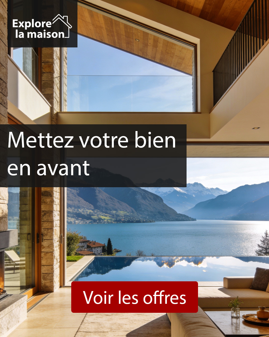 ExploreLaMaison met en valeur votre bien immobilier grâce à un site web dédié et une campagne publicitaire quotidienne qui attire des acheteurs réellement intéressés. Vendez facilement, sans commission et sans intermédiaire, tout en gardant le contrôle. Notre solution moderne et avantageuse offre une visibilité maximale et représente une alternative performante aux agences traditionnelles.